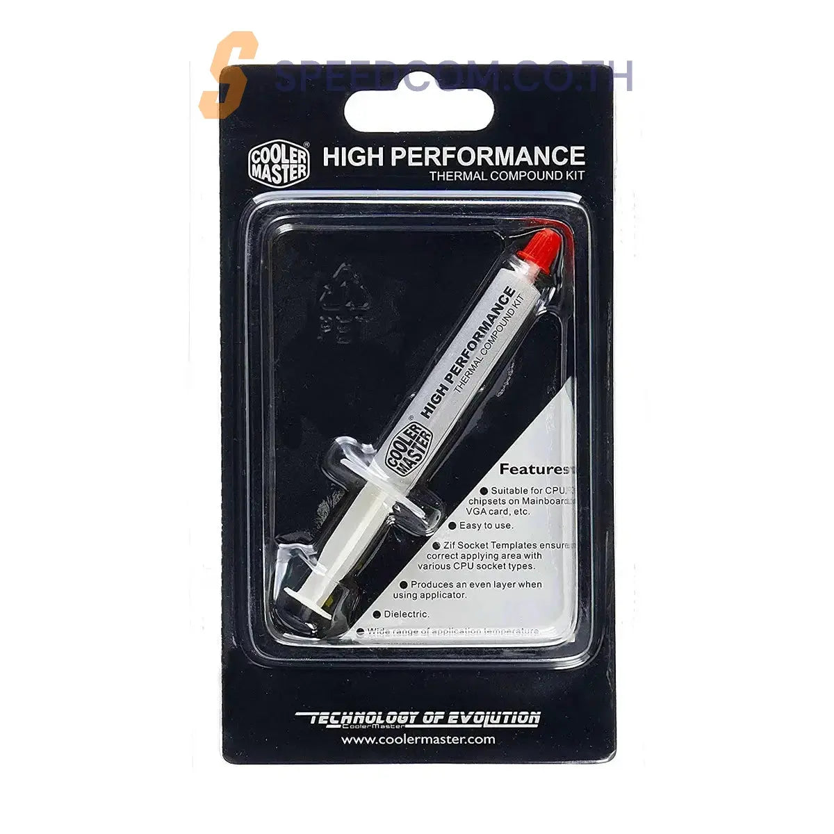 Cooler Master HTK-002 สารประกอบนำความร้อนเป็นวัสดุซิลิโคนคล้ายจาระบี ซึ่งเต็มไปด้วยออกไซด์ของโลหะนำความร้อน การผสมผสานนี้ส่งเสริมการนำความร้อนสูง การตกเลือดต่ำ และความเสถียรที่อุณหภูมิสูง สารประกอบเหล่านี้ต้านทานการเปลี่ยนแปลงความสม่ำเสมอที่อุณหภูมิสูงถึง 177°C (350°F) โดยรักษาผนึกแผงระบายความร้อนในเชิงบวกเพื่อปรับปรุงการถ่ายเทความร้อนจากอุปกรณ์อิเล็กทรอนิกส์ไปยังแผงระบายความร้อนหรือแชสซี จึงช่วยเพิ่มประสิทธิภาพโดยรวมของอุปกรณ์