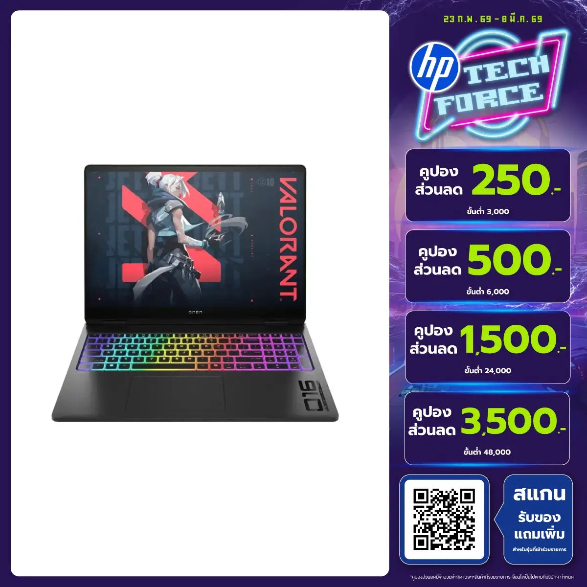 The 16.0-inch screen has a resolution of 2.5K (2560x1600) IPS and comes with a refresh rate of 240Hz VRR, providing smooth images suitable for gamers who want an advantage in every moment of play. It also has Low Blue Light technology that reduces blue light to protect your eyes when used for long periods of time.