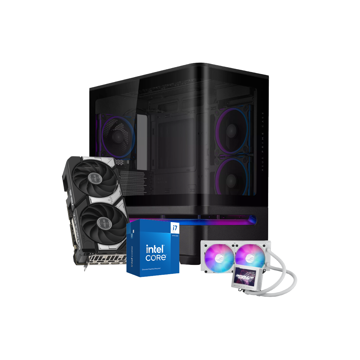 - COOLING: ASUS ROG Ryujin III 240 ARGB White, 2-stage closed-loop water cooling system, efficient CPU cooling, with ARGB lighting.
