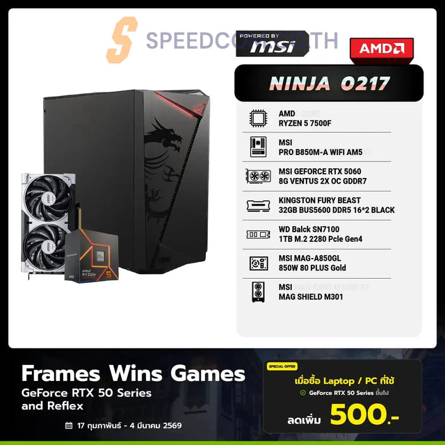Looking for a computer that can handle gaming, work, and entertainment within a reasonable budget? Check out the MSI NINJA 0217 custom build! This kit is the perfect choice! We've carefully selected high-quality components that work together seamlessly to deliver reliable performance, impressive speed, and stability you can trust.